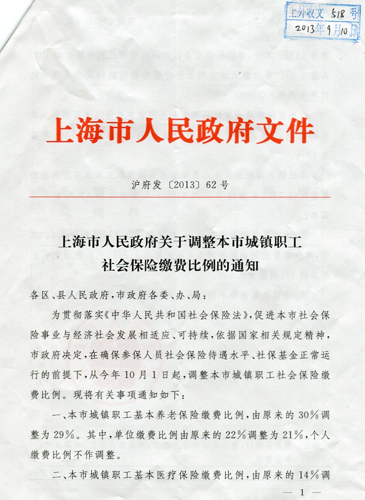 根据沪府发【2013】62号文关于上海市人民政府调整本市城镇职工社会保险缴费比例的通知,我校将从2013年10月起调整全校职工社会保险缴费比例,各项社会保险费率调整详见“调整本市城镇职工社会保险缴费比例一览表”。 附件:调整本市城镇职工社会保险缴费比例一览表 人事处劳资科 2013-09-23 联系人:杜佳维 联系电话:35372802