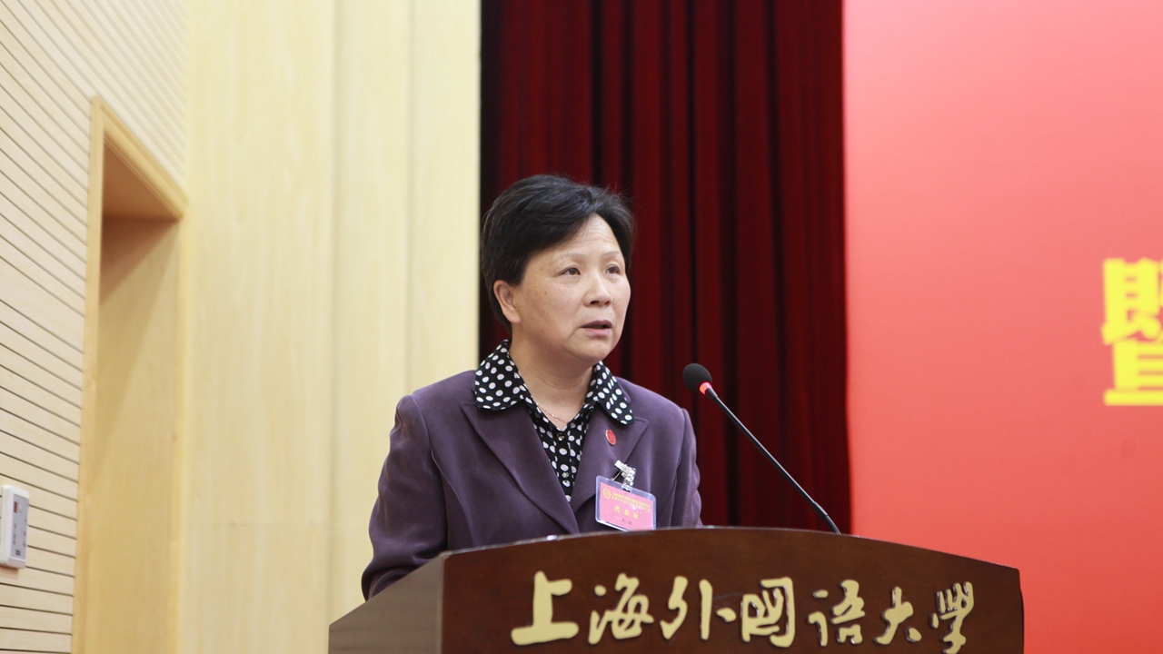 会上,华东师范大学工会常务副主席王平、上外团委书记朱鸣华分别代表兄弟高校工会和上外群众团体向大会致贺词。
