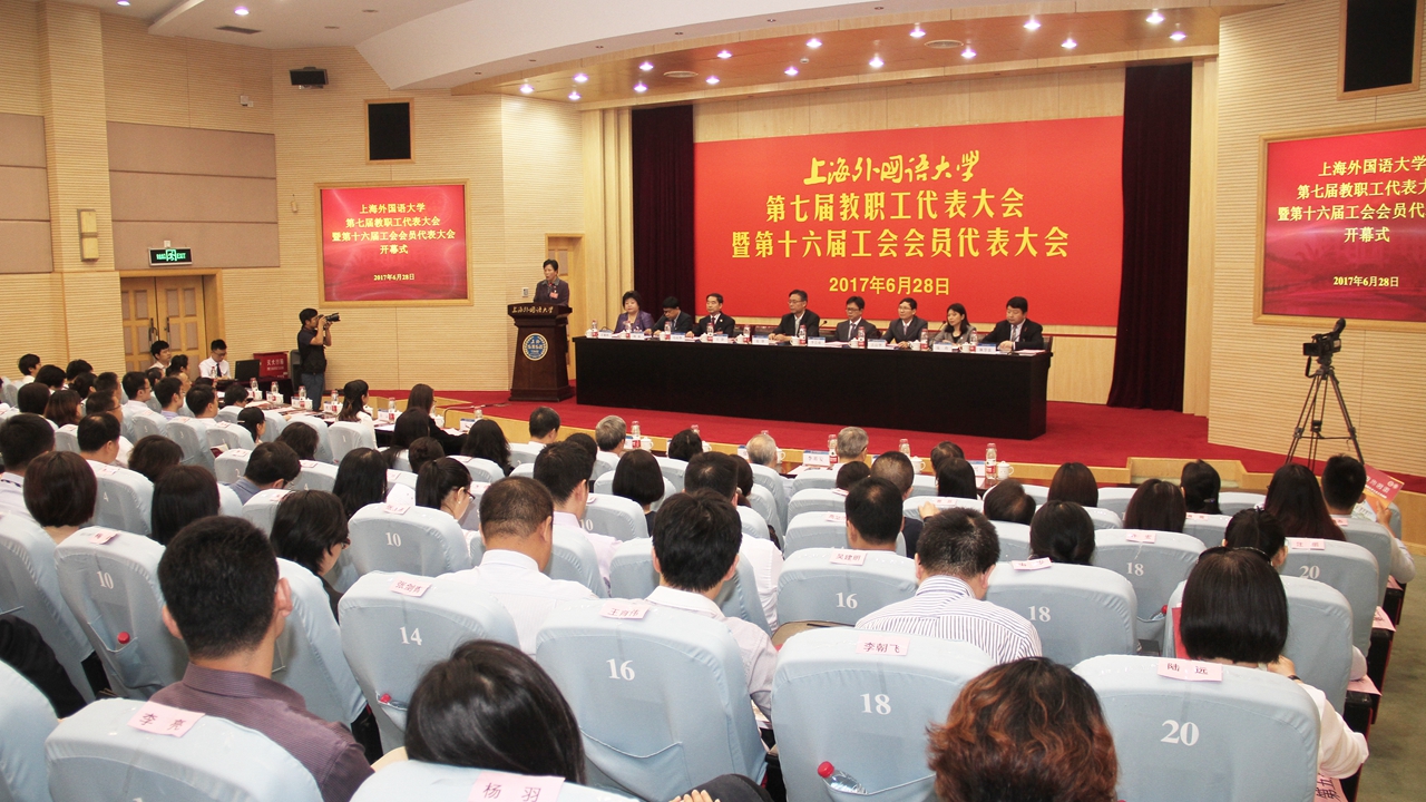 仲夏时节,万物繁盛。在这美好的季节里,第七届教职工代表大会暨第十六届工会会员代表大会于6月26日至28日在上外虹口校区会议中心胜利召开。这次大会的主题是:凝心聚力,共商良策,为把上外建设成为在国别区域全球知识领域特色鲜明的世界一流外国语大学而奋斗!