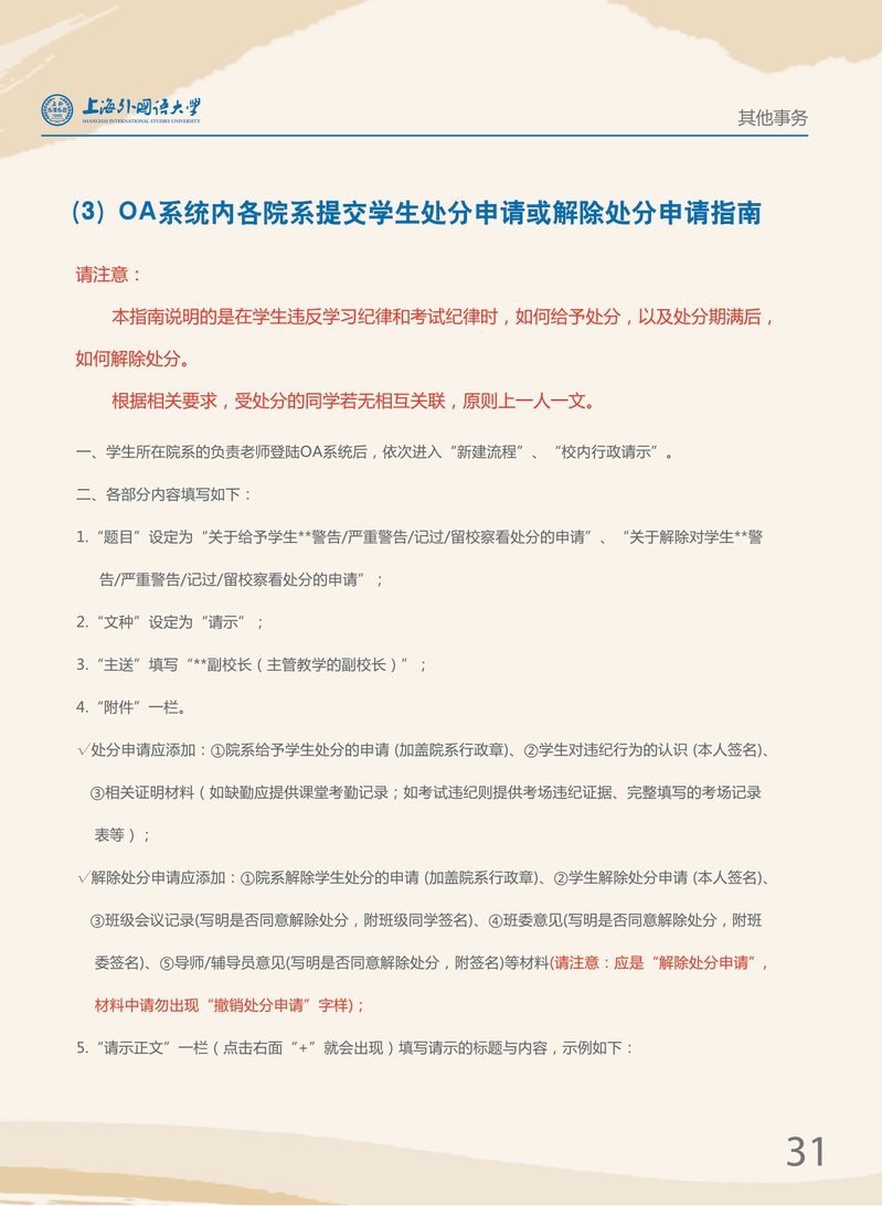 OA系统内各院系提交学生处分申请或解除处分申请指南