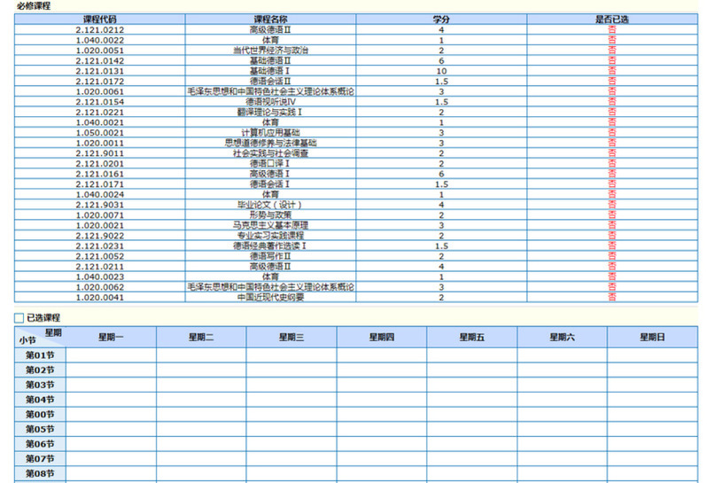 并在选课时从选课列表中查询“必修课建议列表” 防止漏选:
