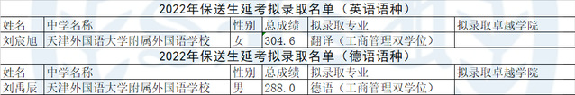 根据《2022年保送生招生简章》,我校依据考生综合考核总成绩,不分文理科类或选考科目,分考试语种择优录取,2022年因疫情防控原因另行组织的保送生延考拟录取名单经学校招生工作领导小组审定,现予公示: